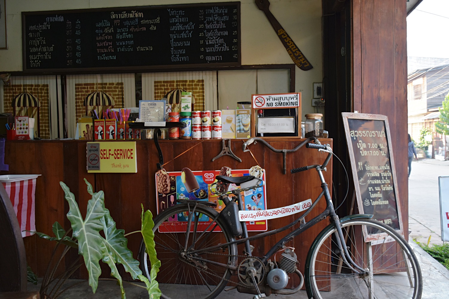 หลังจากอิ่มท้องก็เดินต่อ ไปหาที่พักที่โทรมาจองไว้แล้วในราคา 550 บาทห้องพัดลม วิวถนนคนเดิน ชื่อ ศรีพรรณโฮมสเตย์ค่ะ ต้นกำเนิดโฮมสเตย์แห่งแรกของเชียงคาน ตอนแรกอ่านรีวิวในกระทู้อื่นๆก็หวั่นๆนิสนึงค่ะ เพราะเป็นบ้านไม้ 2 ชั้นเก่าๆ ออกแนวน่ากลัวเบาๆ แต่พอไปถึง ผิดคาดเลยคะ ห้องน่ารักมาก น่าจะเพราะมีการปรับปรุงใหม่ ชั้นบนเป็นห้องพัก ชั้นล่างเป็นร้านอาหาร อาหารอร่อยถูกปาก ราคาถูกใจ เรา2คนฝากท้องไว้กับที่นี่หลายมื้อเลยค่ะ แทบจะไม่ได้ไปกินร้านอื่นเลย 555+ (ลืมถ่ายหน้าโฮมสเตย์มัวแต่แย่งจักรยานคันที่ชอบกัน 555+)