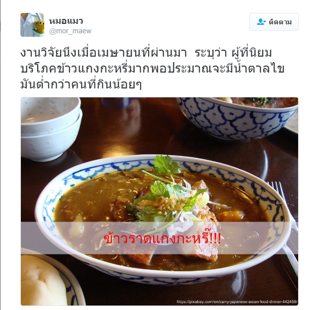 ผลวิจัยระบุ กินข้าวแกงกระหรี่มาก จะมีน้ำตาลไขมันต่ำ กว่ากินน้อยๆ