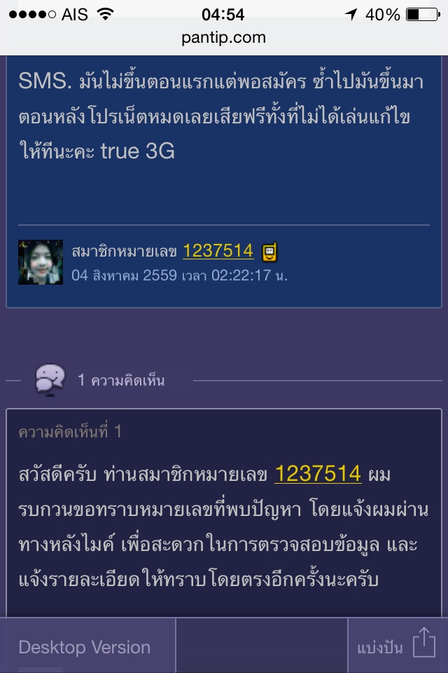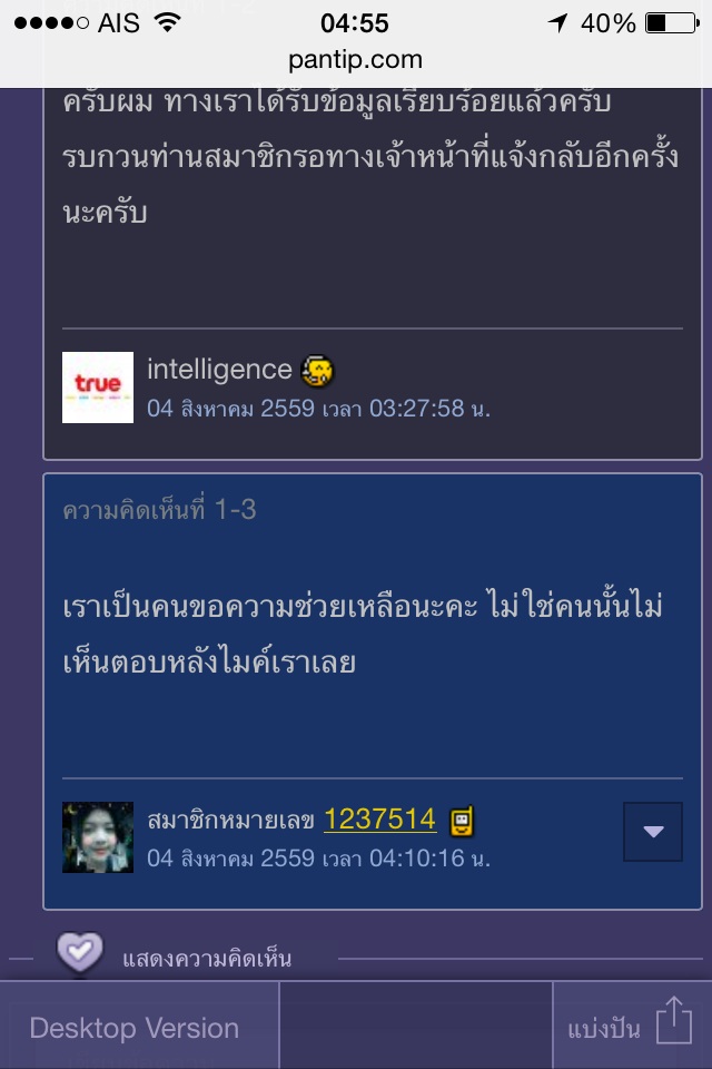 เกิดอะไรขึ้นกับCc พันทิพของTrue จากการส่งแจ้งปัญหาการใช้งาน internet