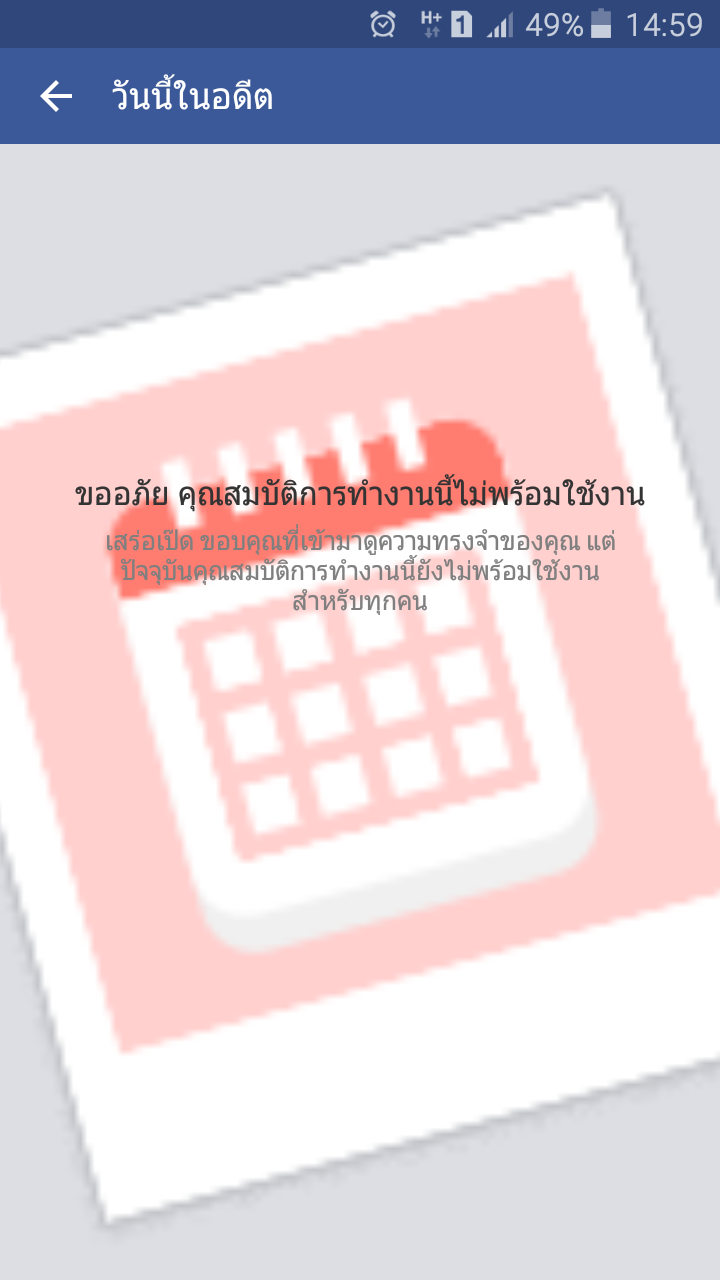 ของแฟนเรามันแจ้งเตือนขึ้นมาเลย วันนี้เมื่อปีที่แล้ว แต่ทำไมของเราไม่มีคะ ของแม่เราก็เหมือนกัน ทั้งที่เราใช้เฟสบุ๊ค ตั้งแต่ปี2010 แล้ว แต่แฟนเราพึ่งเล่นทีหลัง 2012 เฟสบุ๊คควรจะให้เราใช้ก่อนนะ 😂😂 เมื่ออาทิตย์ก่อนยังเด้งขึ้นของเราใช้ได้สัก3วันก็หายเลย ไม่เข้าใจ ให้เราทดลองเล่นงั้นเหรอ 😬😬