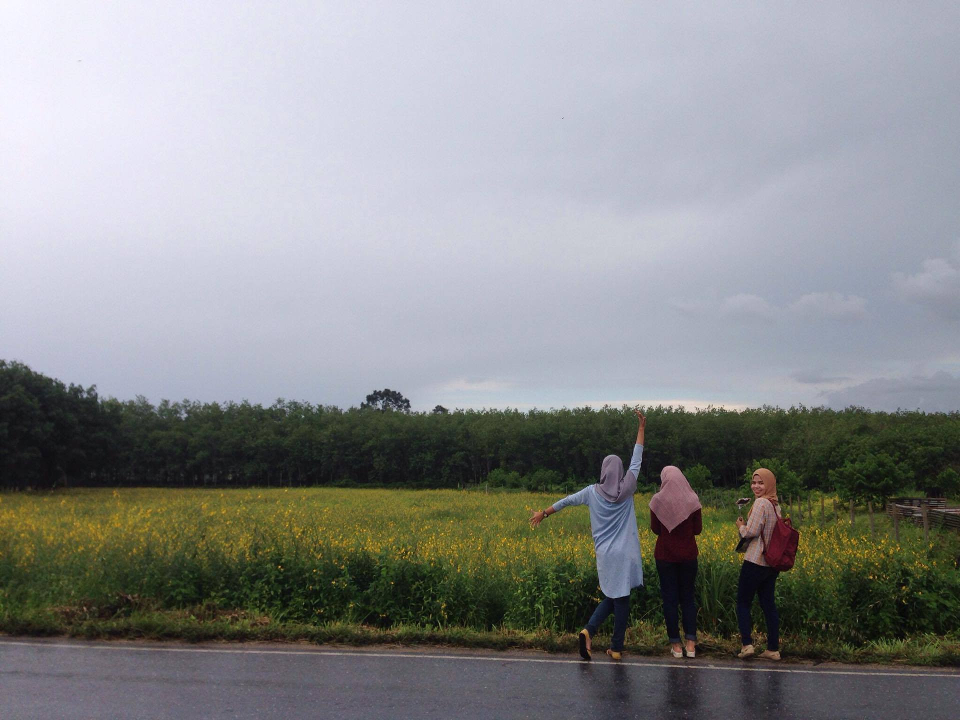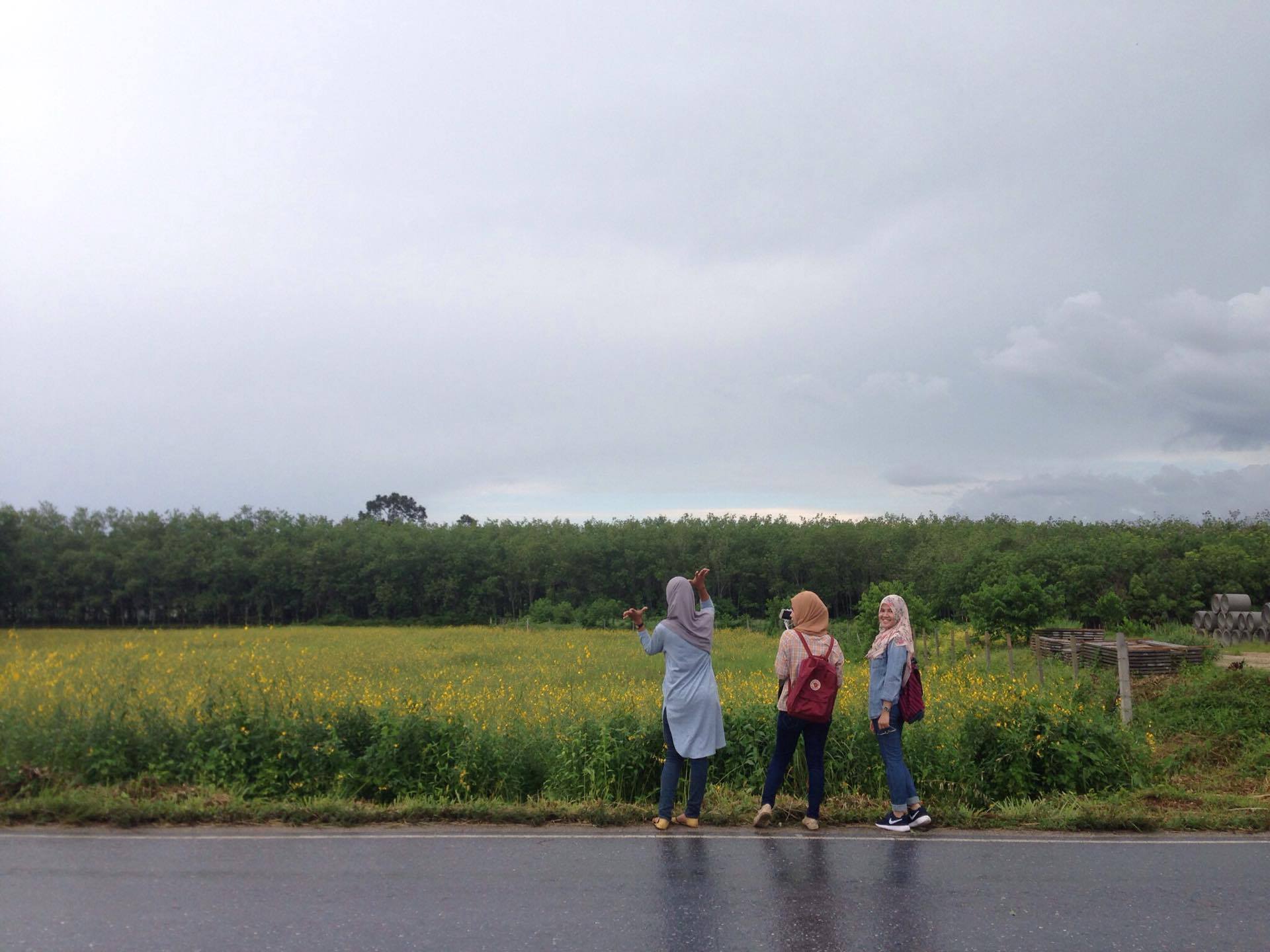 ระหว่างทางสวยงามเสมอ บังเอิญเจอทุ่งปอเทือง เยียบคันเร่งต่อไม่ไหว ใจมันสั่งให้เยียบเบรก ตีไฟเลี้ยว จอดรถตรงไหล่ทาง ทุกคนรีบวิ่งออกจากรถ ตรงไปถ่ายรูป ฝนเพิ่งหยุดตกด้วย บรรยากาศดีมาก