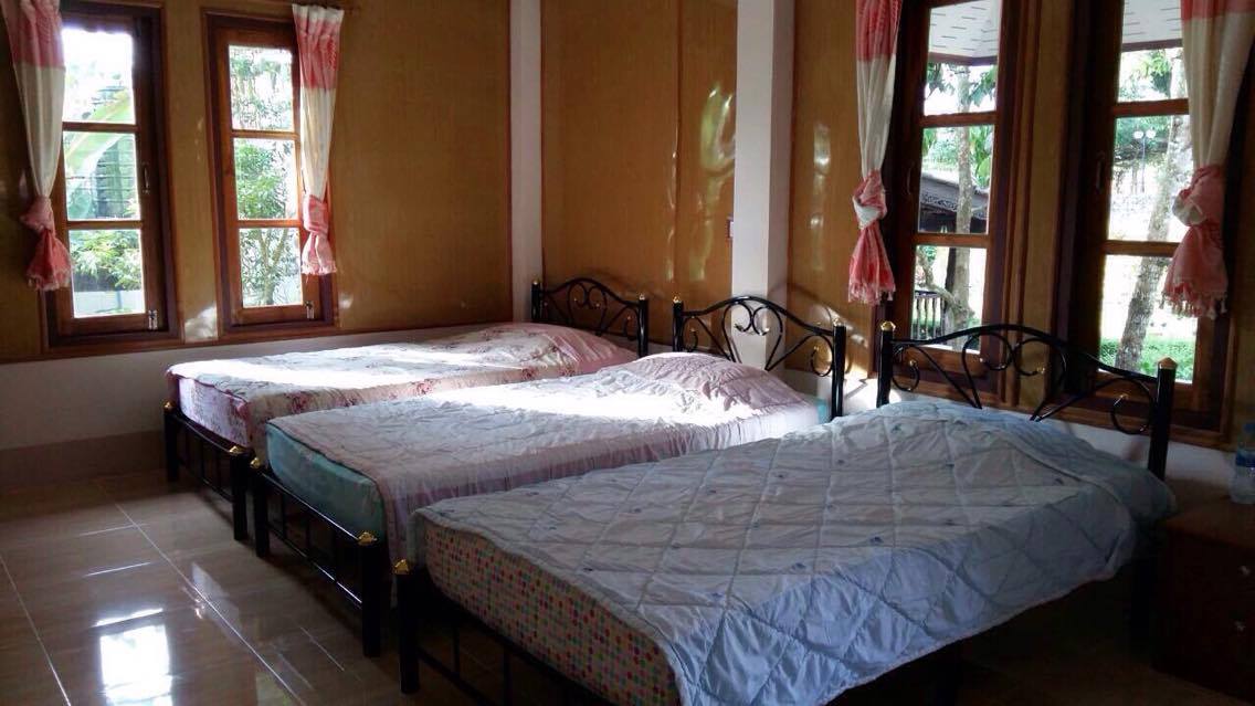 คุยไปคุยมา เจ้าของคุยดีมาก ใจอ่อน เอาที่นี้มันเลยแล้วกัน 1000 บาท/หลัง/คืน มี 3 เตียง