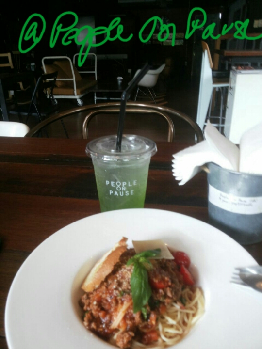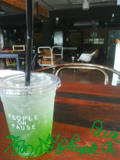 ก่อนจะชิมสปาเกตตี้ซอสเนื้อ มีน้ำกีวีโซดามาจิบรอไปพลางๆก่อน