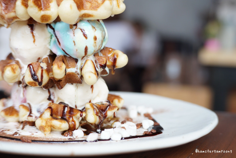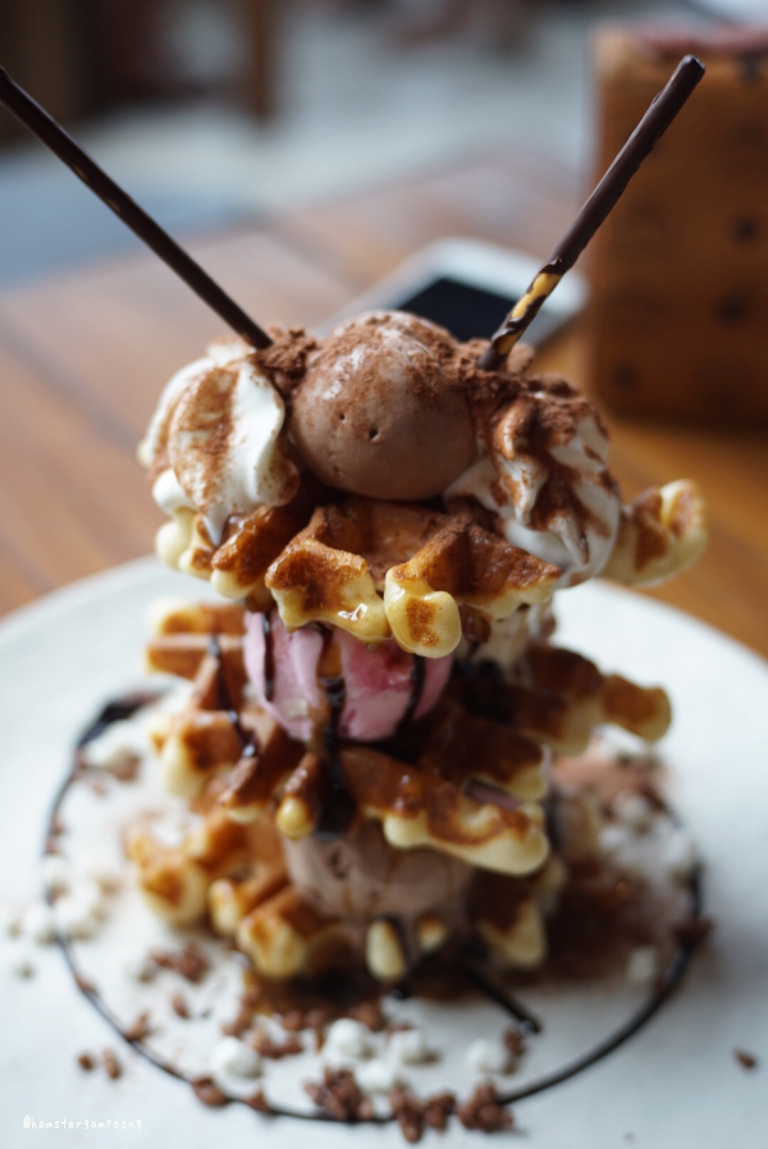 ต่อด้วย ของหวานชุดใหญ่ เขาว่าร้านนี้ต้องลองเจ้านี้เลย Timber Tower ผลที่ได้ ชอบมากกกก วาฟเฟิลอร่อย แม้จะไอติมจะละลายแล้ว แต่วาฟเฟิลยังกรอบ ติดใจมาก ไปกัน 3 คนไม่เหลือ งานนี้นับแคลอรี่ไม่ถูกเลย