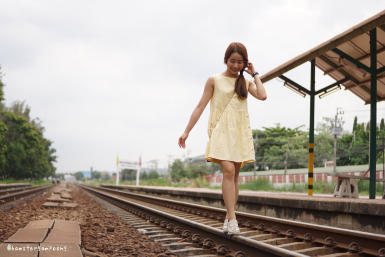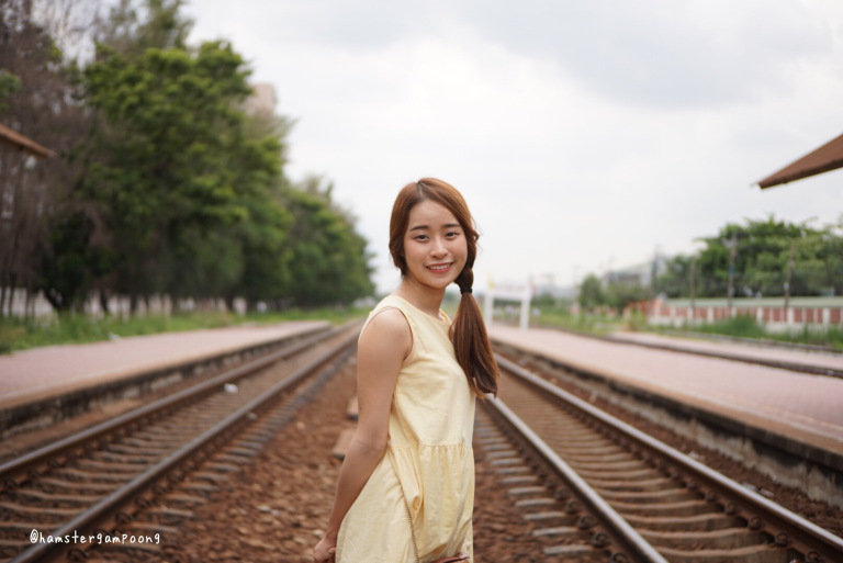 ส่งสาวน้อยไปยืนรอรถไฟเบาๆ รี่ถ่ายจากระยะค่อนข้างไกล ภาพที่ได้ก็ยังคมอยู่