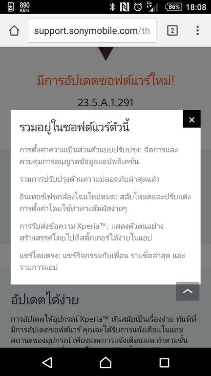 เมื่อวานนี้ตอนเย็นมีแจ้งเตือน Update Firmware ใหม่ ของ Xperia Z2 Version 23.5.A.1.291