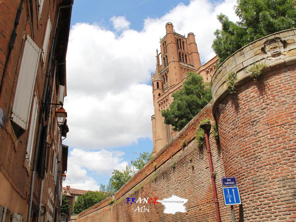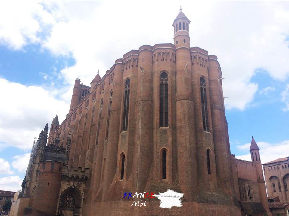 ก่อนเข้าที่จอดรถ เราก็เห็นมหาวิหารอัลบี (Cathédrale d'Albi) ไซส์ใหญ่สีแดงส้มตั้งตระหง่าน ปะทะสายตา มหาวิหารอัลบี ได้รับการขึ้นทะเบียนเป็นมรดกโลกโดยองค์การยูเนสโก เมื่อปีค.ศ. 2010 เป็นข้อยืนยันว่า สวยสง่าคุ้มค่าแก่การมาเยือน แต่เราจะเก็บไฮไลท์นี้ไว้ทีหลัง