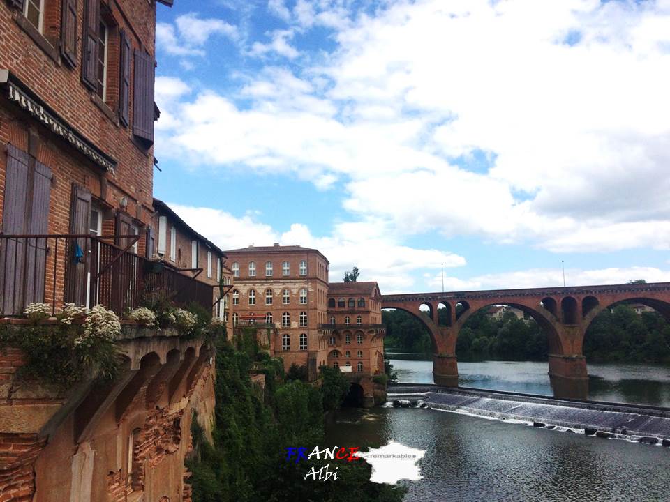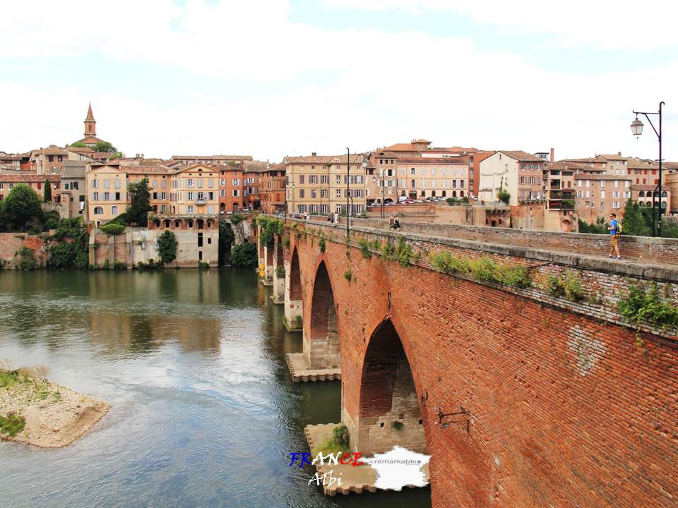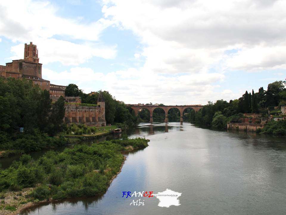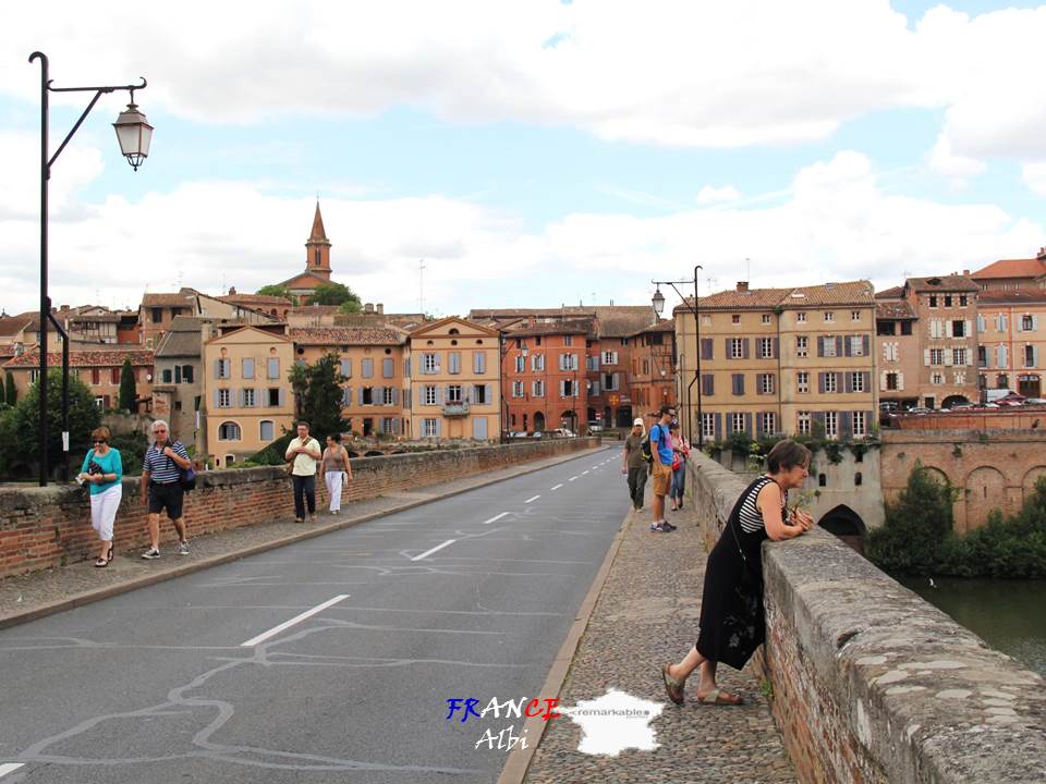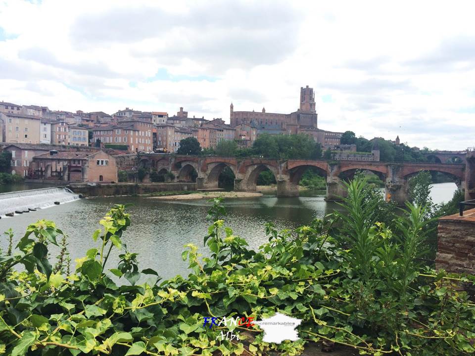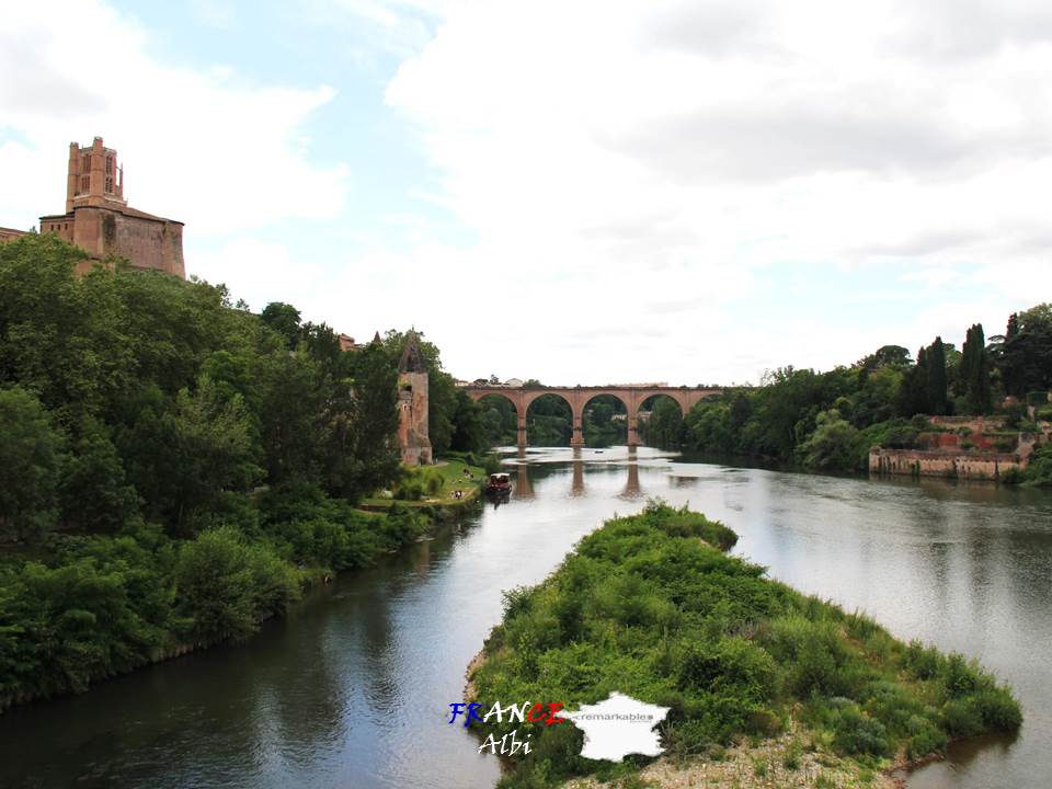 ที่ Albi นี่ คนชอบมาถ่ายวิวริมน้ำ เพราะจะได้มุมมหาวิหารอัลบี (Cathédrale d'Albi) กับริมแม่น้ำTarn แม่น้ำมีความสำคัญทางด้านการค้าและการคมนาคมในสมัยโบราณ และสะพานข้ามแม่น้ำเก่าแก่เก๋ไก๋ชื่อว่า Pont Vieux หรือสะพานเก่า สะพานนี้สร้างตั้งแต่ค.ศ. 1035 ถึงตอนนี้ก็อายุเกือบพันปีแล้ว ปัจจุบันสะพานแห่งนี้ได้กลายเป็นหนึ่งในสัญลักษณ์ที่มีความสำคัญทางประวัติ ศาสตร์ของเมืองอัลบี และถือเป็นมุมยอดนิยมของนักท่องเที่ยวเลยค่ะ