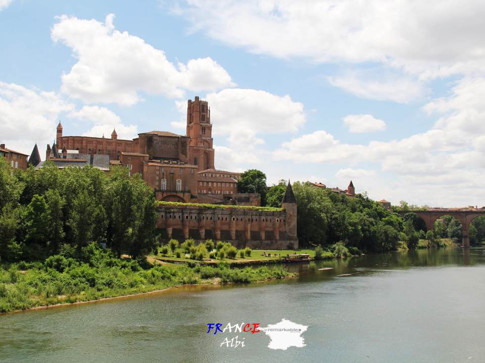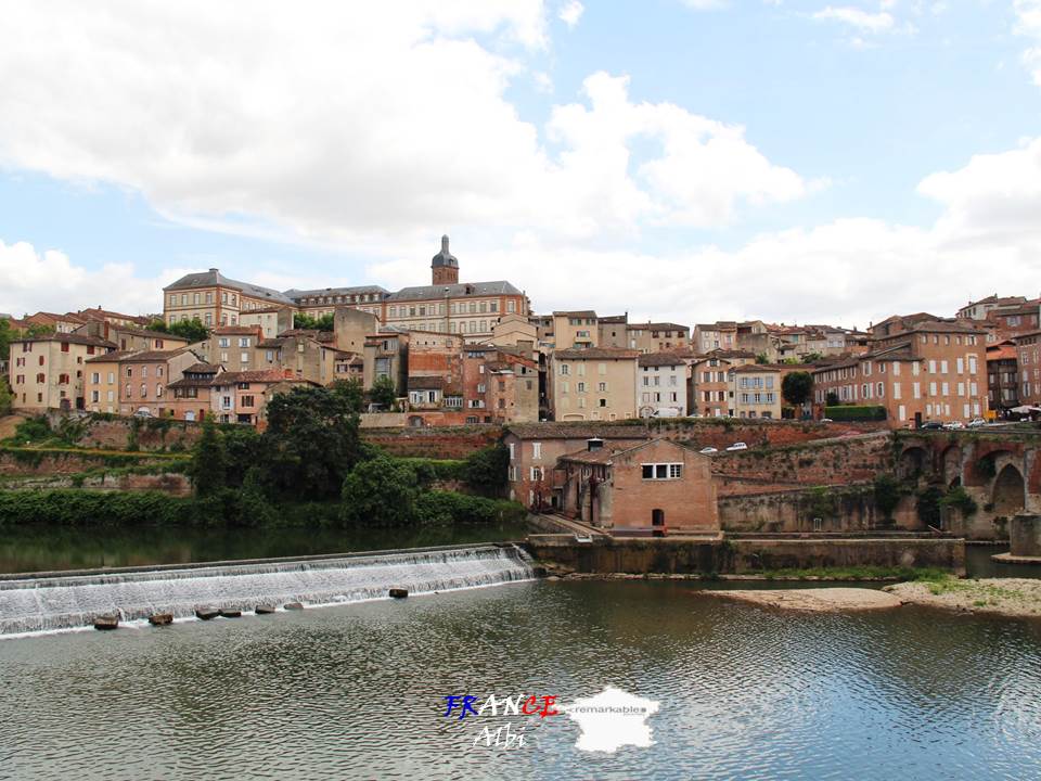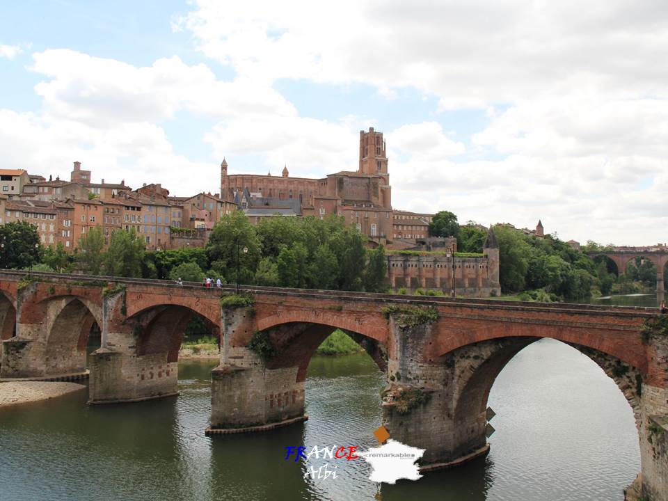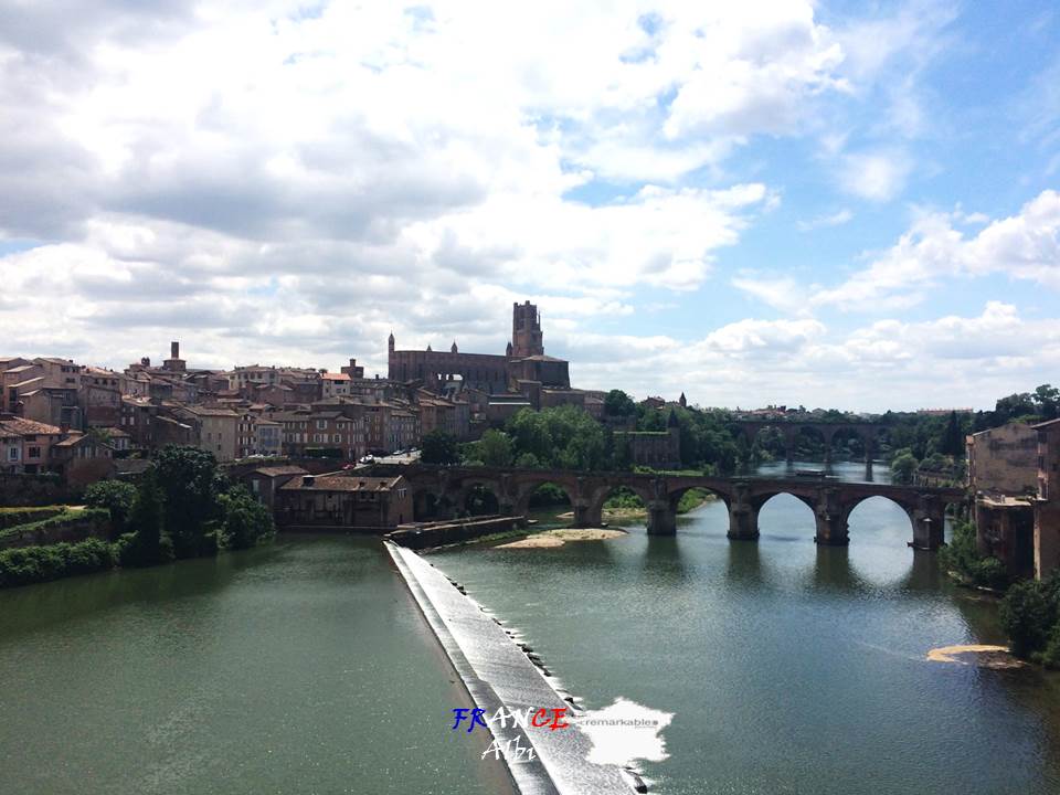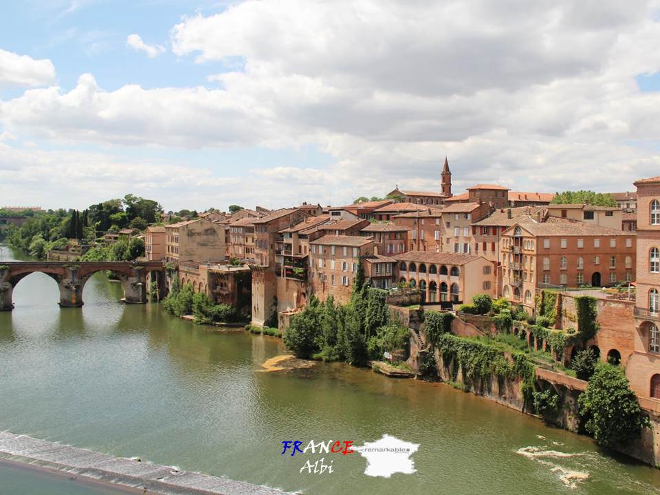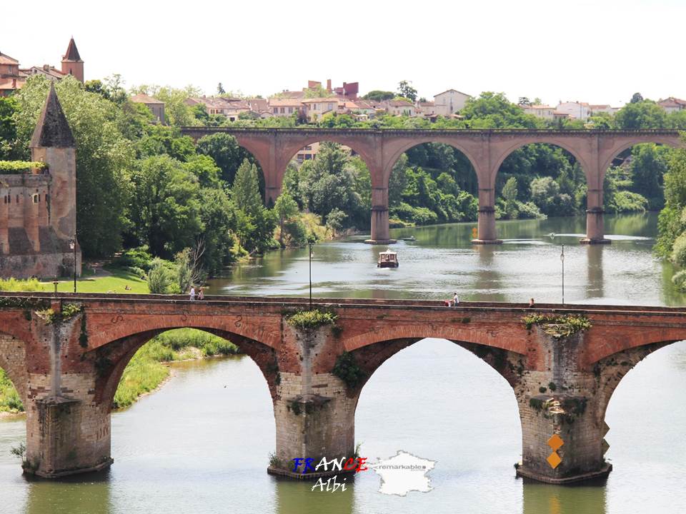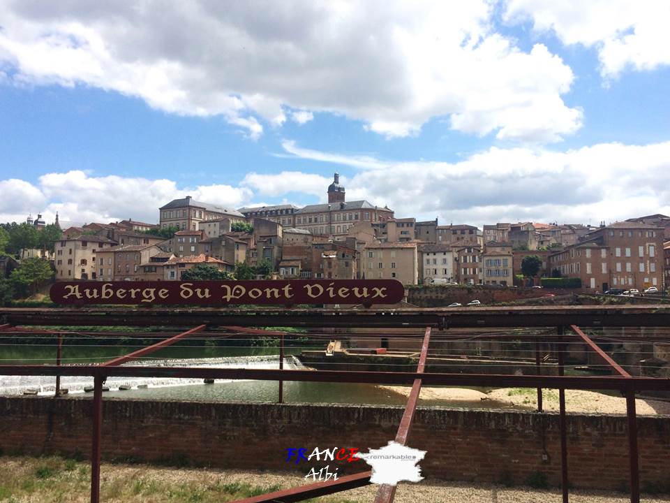 ที่ Albi นี่ คนชอบมาถ่ายวิวริมน้ำ เพราะจะได้มุมมหาวิหารอัลบี (Cathédrale d'Albi) กับริมแม่น้ำTarn แม่น้ำมีความสำคัญทางด้านการค้าและการคมนาคมในสมัยโบราณ และสะพานข้ามแม่น้ำเก่าแก่เก๋ไก๋ชื่อว่า Pont Vieux หรือสะพานเก่า สะพานนี้สร้างตั้งแต่ค.ศ. 1035 ถึงตอนนี้ก็อายุเกือบพันปีแล้ว ปัจจุบันสะพานแห่งนี้ได้กลายเป็นหนึ่งในสัญลักษณ์ที่มีความสำคัญทางประวัติ ศาสตร์ของเมืองอัลบี และถือเป็นมุมยอดนิยมของนักท่องเที่ยวเลยค่ะ