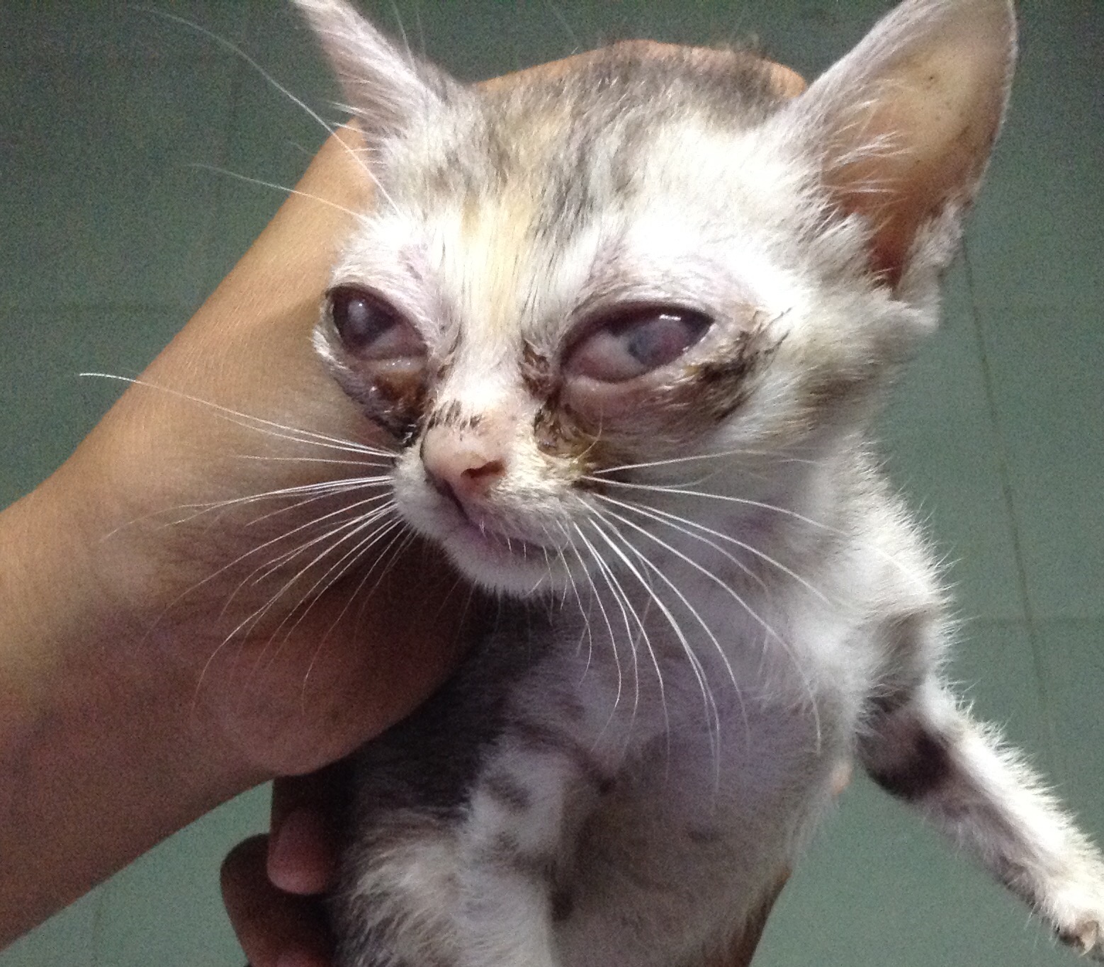 สวัสดีค่ะ คือมีคนเอาเเมวมาปล่อยไว้หน้าบ้านเลยเอามาเลี้ยง ที่บ้านมีเเม่เเมวพอดีเลยให้ไปเนียนกินนมด้วย สังเกตุมาตั้งเเต่เเรกเเล้วมามีขี้ตาเยอะมากที่ตา พยายามเช็ดออกให้เเล้วเเต่พอเช้ามาก็กลับมามีอีก จนเห็นเหมือนมีตาขาวๆของมันในตาอีกชั้นเริ่มเเทรกออกมาเเล้ว คล้ายจะตาบอดมองไม่เห็น ตอนนี้เลี้ยงมาเกือบๆเดือนเเล้ว มันเป็นหนักกว่าเดิม เหมือนลูกตาจะทลักออกมาเลยเเต่ยังกินนอนปกติค่ะไม่ร้องด้วย ใครรู้ว่ามันเป็นอะไร ต้องทำยังไงบอกทีนะค่ะ สงสารมัน มีรูปประกอบนะค่ะ อาจจะน่ากลัวหน่อย