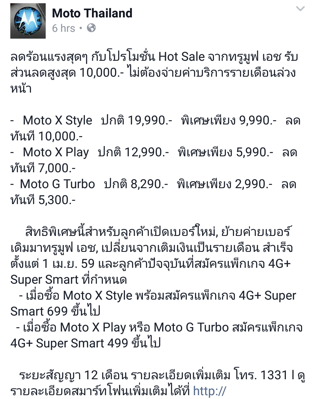 สอบถามโปรฯ มือถือ Moto ค่ายทรูมูฟ