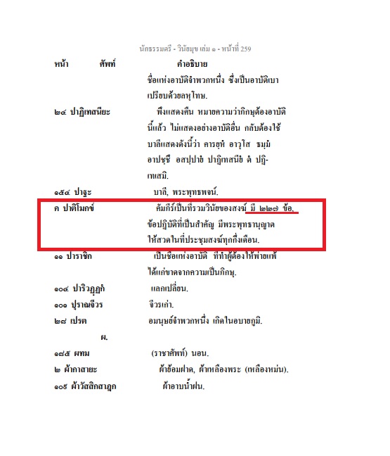 แม้ในคำอธิบายท้ายเล่มวินัยมุข ท่านก็เขียนไว้ชัดว่า ปาติโมกข์ที่ทรงให้สวดทุกกึ่งเดือนมี ๒๒๗ ข้อ