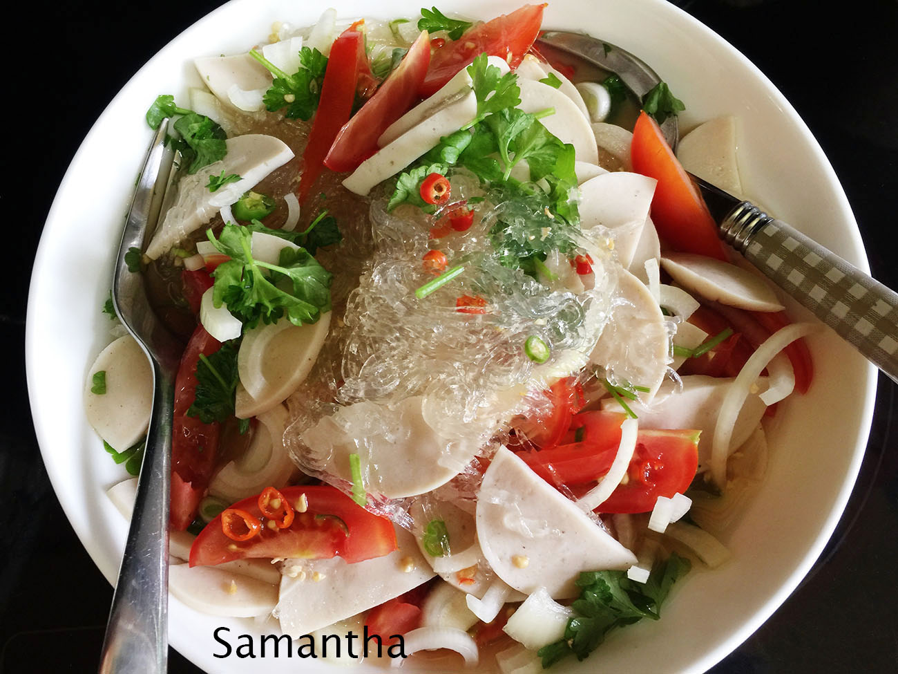 ยำวุ้นเส้นที่เห็นส่วนใหญ่เดี๋ยวนี้จะเป็นยำวุ้นเส้นแฉะๆ แบบลวกวุ้นเส้นเสร็จก็ใส่เนื้อสัตว์ มะเขือเทศ ปรุงรส ใส่ผักแล้วก็คลุกผสม ที่บ้านไม่มีใครชอบยำวุ้นเส้นแบบนี้กัน เวลาอยากทานยำวุ้นเส้นก็จะทำเอง เป