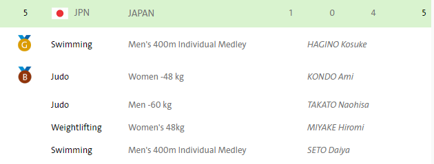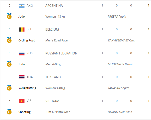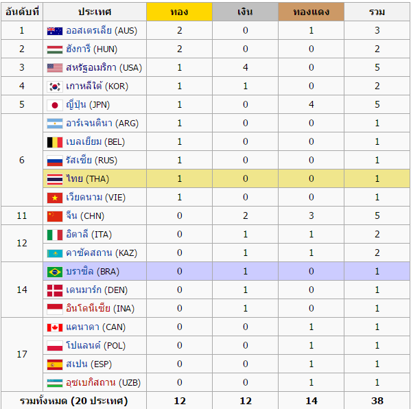 สรุปเหรียญทองวันที่ 6 สิงหาคม 2559 ในเวลา 9.49 (ICT)