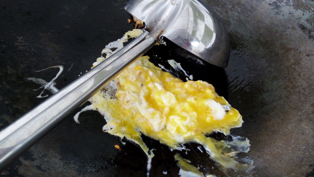 2. เทไข่ลงไป ผัดส่วนผสมเข้ากันให้สุกสัก 70 เปอร์เซนต์