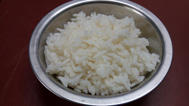 1. ข้าว 110 กรัม ปริมาณเท่านี้สำหรับ 1 จาน 1 ท่าน ปริมาณข้าวสำคัญนะครับ มากไปก็ไม่อร่อย ถ้าแช่เย็นก็จะดี แต่ผมไม่มีเวลาละ หิว วันนี้ผมใช้ข้าวเก่า เสาให้ เม็ดจะแห้งๆ ร่วนๆ เหมาะสุด ผมไม่แช่เย็น