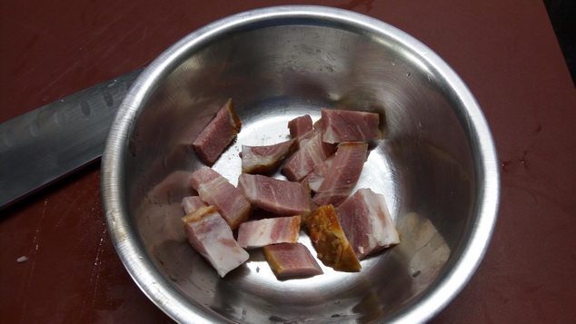 3. หมูแฮม ตามชอบ ประมาณ 30-40 กรัม หั่นให้หนาๆ ไปเลย จะได้รสสัมผัสที่ดีกว่า