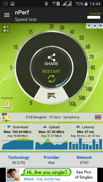 ตั้งแต่ dtac ย้ายตัวส่งสัญญาณมาติดที่้เสา true อยู่ห่างจากเสา dtac.เหมือนเดิม 180 เมตร แต่อยู่ใกล้ บ้าน มากขึ้น ทำให้สัญญาณ dtac 4g 2300 MHz. ที่บ้านแรงขึ้นกว่าก่อน เทสสปีด เกิน โปร ที่สมัครไว้ตลอด ดี