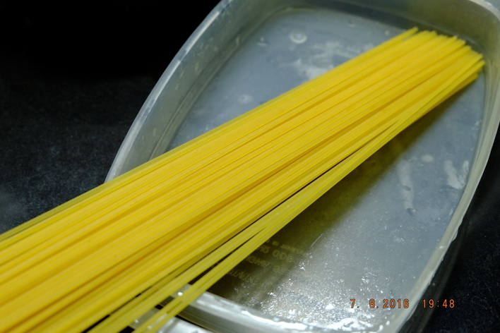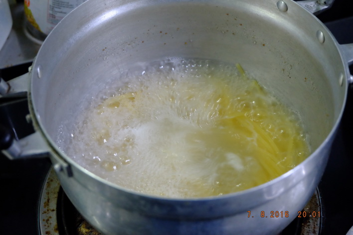 1. เส้นสปาเก๊ตตี้ No.3 70-80 กรัม ปริมาณเท่านี้เหมาะกับ 1 จาน แต่บางทีก็แค่ 60 กรัมเอง เวลาใส่เครื่องเยอะๆ ก็จะพอดี ถ้า 80 กรัม เครื่องเยอะ จานนั้นจะใหญ่เลย