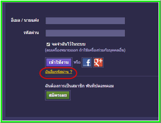 ในหน้า Log in ให้กด "ฉันลืมรหัสผ่าน"