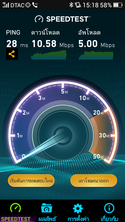วันที่ทดสอบ 2 สิงหาคม เวลา 10.00 น. Ais DL 14.77 UL 2.68 Dtac DL 27.82 UL 24.31
