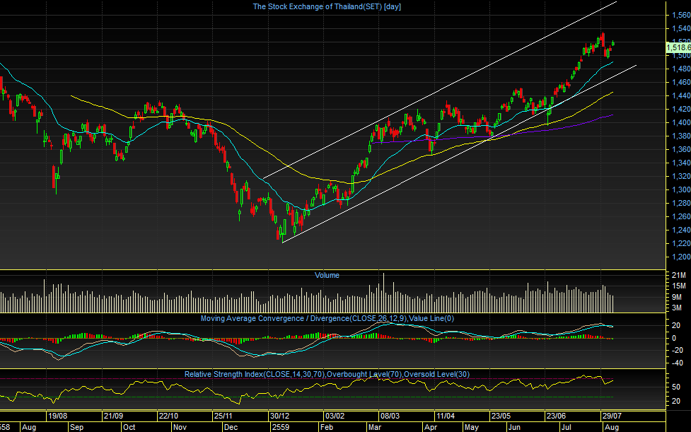 SET index Daily : เมื่อวานศุกร์ที่ผ่านมา ดัชนี มีความพยายามที่จะพุ่งทะยานขึ้นไปปิดตัวยืนเหนือระดับ 1520 แต่ท้ายตลาด ได้เผชิญกับ