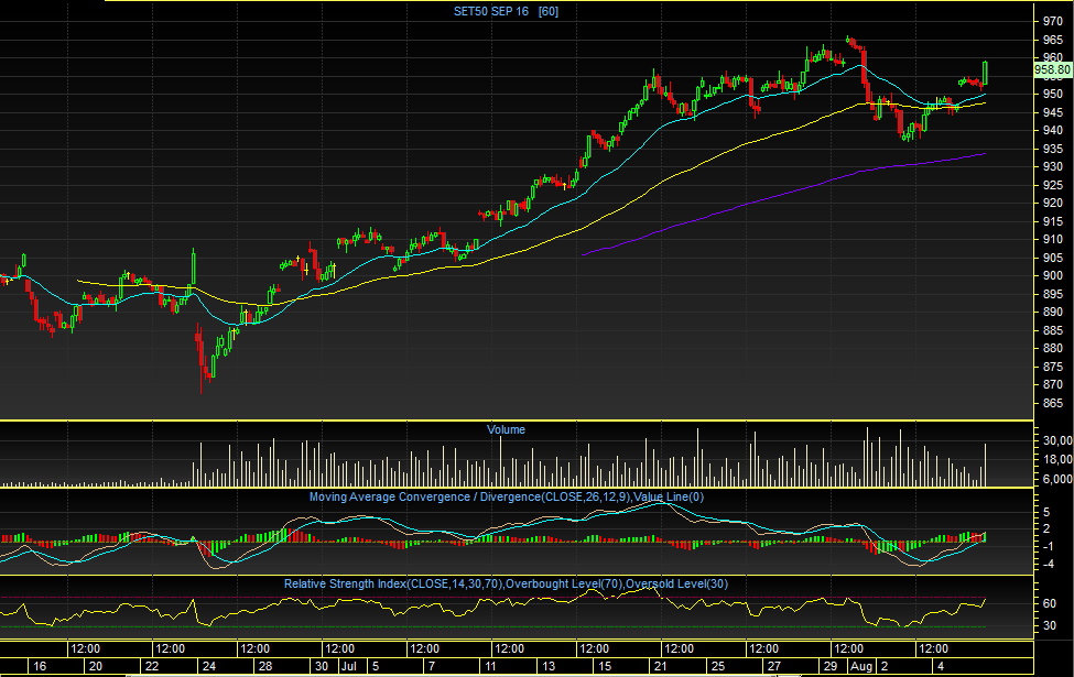 S50U16 TF60 min : เช้าวานศุกร์ที่ผ่านมา ดัชนีได้กระโดดเปิด Gap ทะยานขึ้นไปยืนเหนือ EMA25,75 วัน ได้อีกครั้ง ซึ่งเป็นการ