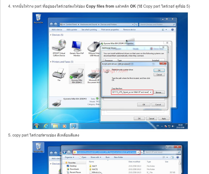 ข้อ 4 ให้วาง part ที่อยู่ของไดร์เวอร์ลงให้ช่อง Copy files from แล้วคลิก OK (วิธี Copy part ไดร์เวอร์ ดูที่ข้อ 5)