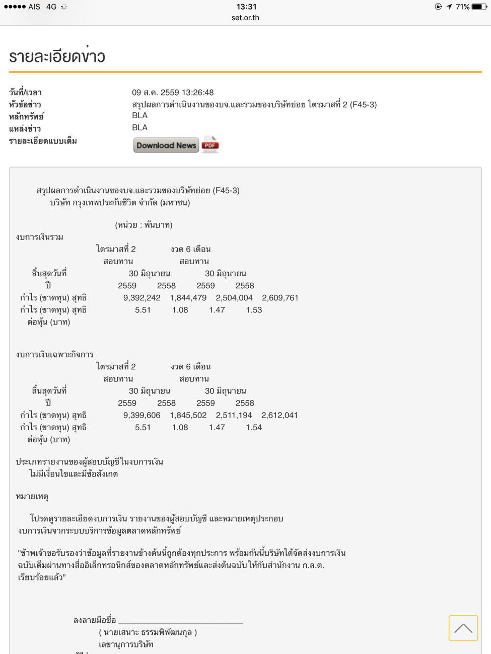 งบ BLA กรุงเทพประกันชีวิตออกยังครับ