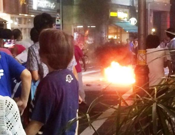 วงแตก! ผู้เฒ่าญี่ปุ่นขว้างระเบิดเพลิงถล่มงานเทศกาลแห่งความรัก