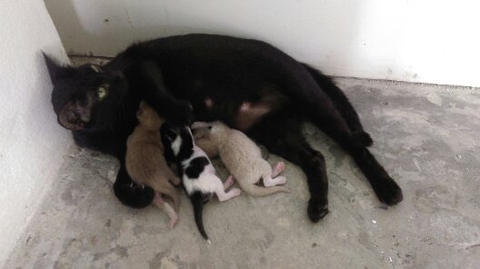 สวัสดีค่ะ เมื่ออาทิตย์ก่อนๆ ได้มาลงหาบ้านให้แม่แมวดำ 2 ตัว ตอนนี้ตัวขี้อ้อนมีลูกแมวน้อย 3 ตัวค่ะ ออกมาได้ 3 วัน พุงกลมๆ แล้ววววววว