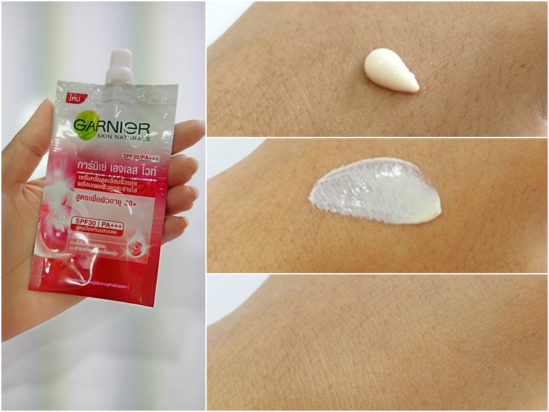 ลักษณะ = เนื้อครีมเซรั่มบางเบา สีขุ่นๆ ซึมไว ไม่เหนอะหนะ กลิ่นหอมอ่อนๆ สดชื่นๆ