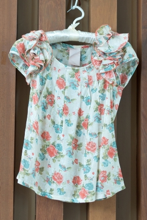 A019 เสื้อสีขาวปลายแขนลายดอก อก 35” ยาว 21” ราคา 50 บาท