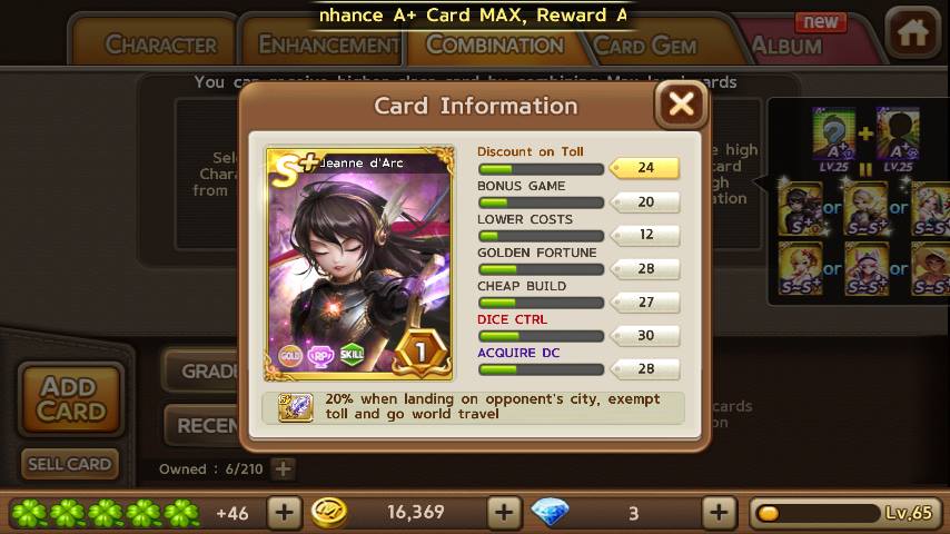 ผมว่า เว้น นี้ ยากเอาเรื่องเลย ตอนแรกๆ คิดว่า จะไม่เอาละ แต่จู่ๆ เกิดอยากลองเล่น อีอัน ขึ้นมา การ์ด A A+ น่าจะร่วม ๆ 200 ใบ ทอง ประมาณ 4 - 5 ล้าน เพชรหมดตัว มาได้อัลบัมครบ 1 ตัว เมื่อสุ่มจนเหลือ เ