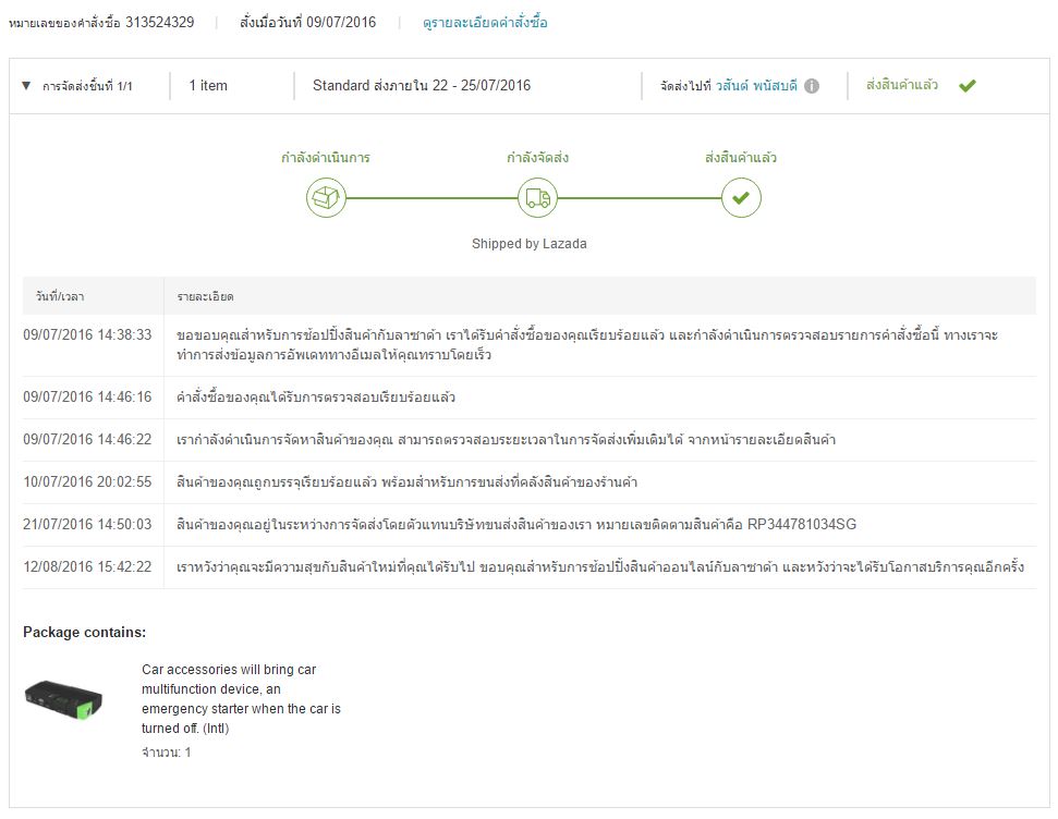 แต่มาวันนี้มีอีเมล์แจ้งมาบอกว่าผมได้รับสินค้ากับทาง LAZADA เรียบร้อยแล้ว ผมล่ะงงสิครับ วันนี้วันแม่ 12 สิงหา ที่บ้านไปมีคนอยู่บ้านสักคน ผมเองก็เพิ่งกลับมาบ้านเมื่อกี้ ไปถามที่ป้อมยามก็ไม่มี