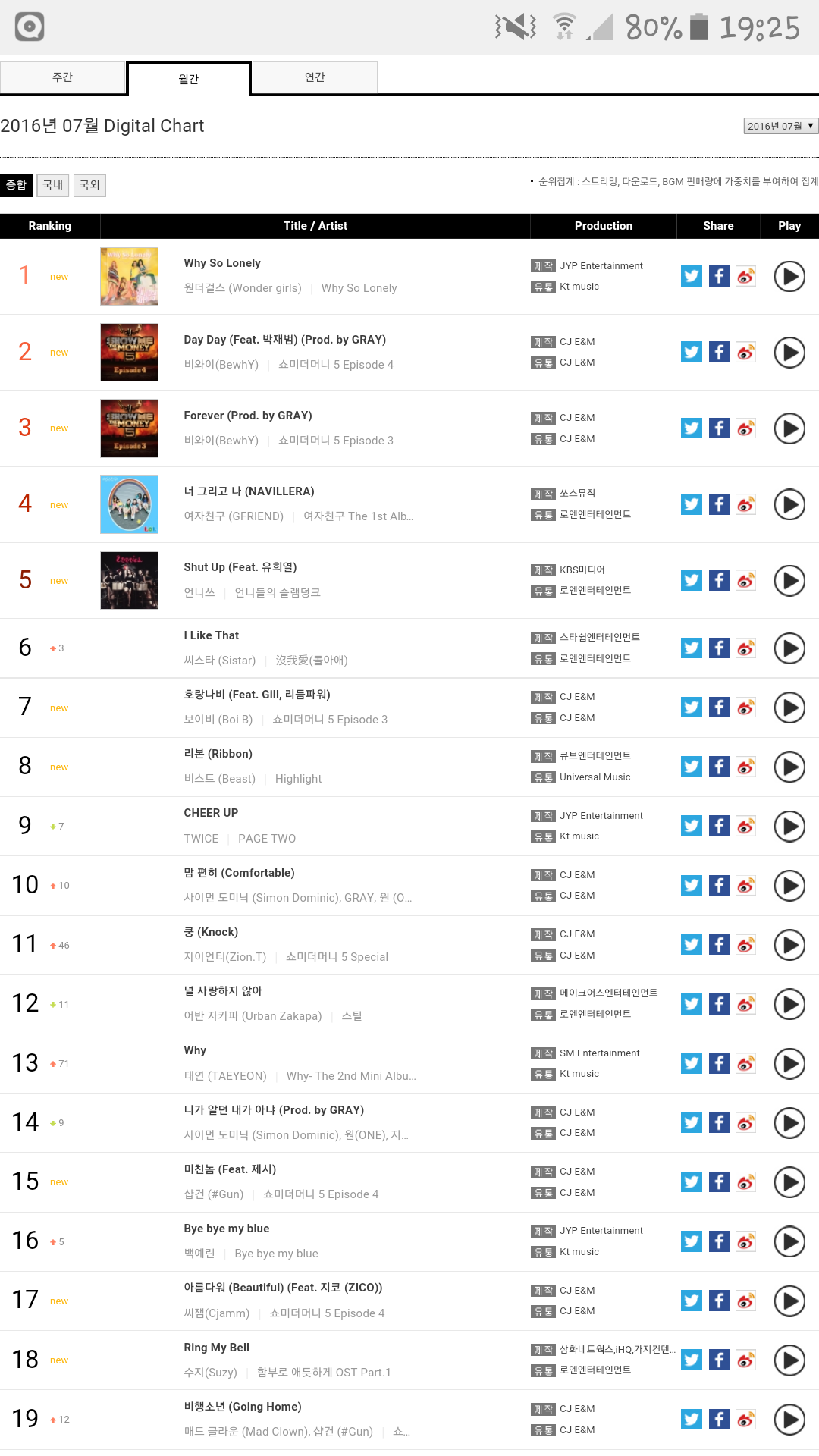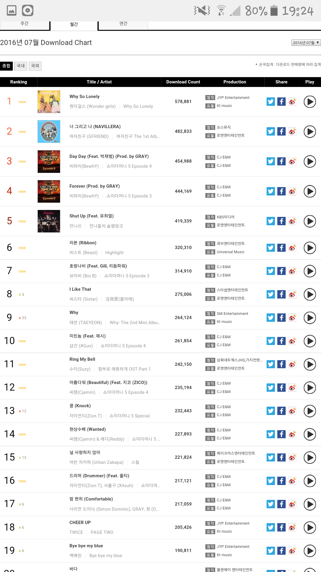 [K-POP] รายงานผล GOAN CHART ประจำเดือน กรกฎาคม 2016