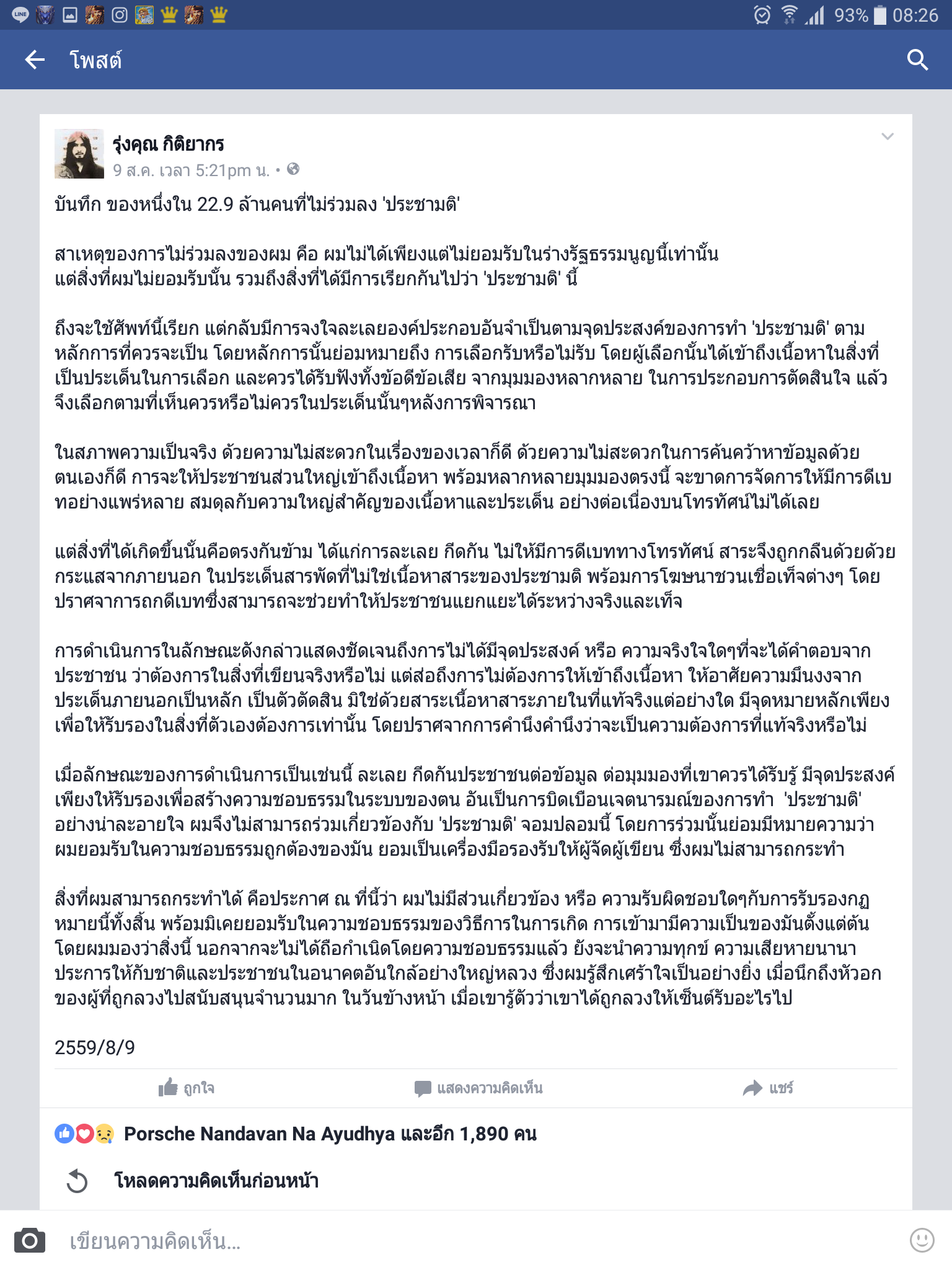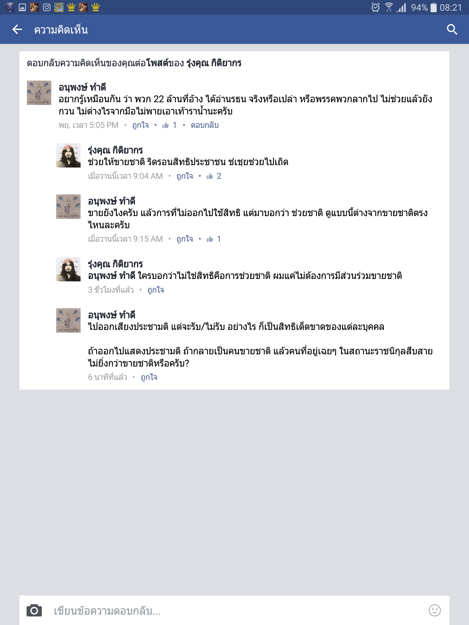 คุณชายท่านบอกว่า ท่านไม่ไปลงคะแนน ท่านคือ 1 ใน 22 ล้านคนท่รักชาติ? คนที่ไปคือพวกขายชาติ?