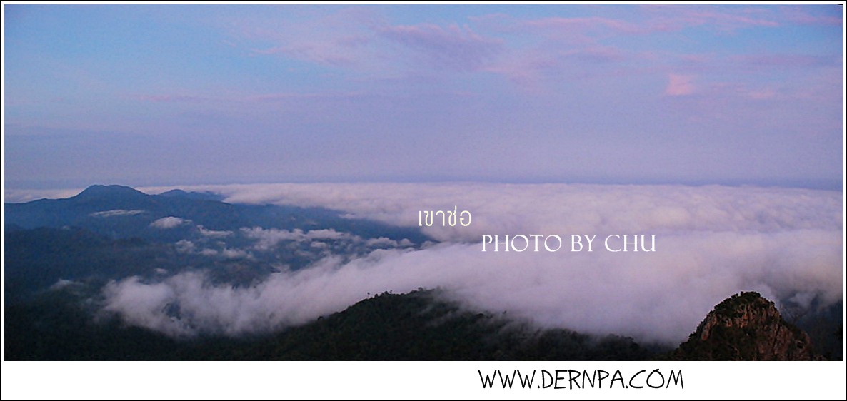 เขาช่อ ก็มีทะเลหมอก ใช้เวลา 2 วัน 1 คืน ติดต่อหน่วยเจ็ดคต ขญ.18 ทำเรื่องขออนุญาต เสร็จแล้ว ขับรถไปต่อ ที่สำนักสงฆ์ ขอจอดรถที่นี่ เริ้มเดินจากจุดนี้ ใช้เวลเดินขึ้นถึงยอดเขาช่อ ประมาณ 4 ชม. ด้านบนเป็นวิวเปิด 180 องศา มองเห็นด้านทิศตะวันตก และทิศใต้ บริเวณที่ตั้งแคมป์ ได้ทั้งกางเต๊นท์ หรือ ผูกเปล แหล่งน้ำใช้ ห่างจากจุดตี้งแคมป์ 500 เมตร