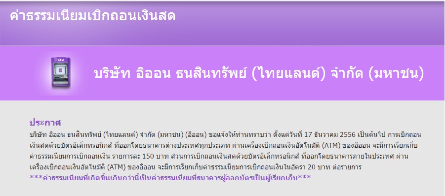 เห็นโฆษณาในหนังสือพิมพ์ไทยรัฐ หน้า 22 วันนี้ ** กรณีลูกค้าบัตรเอทีเอ็ม/เดบิต (ของธนาคาร/ธนาคารอื่น) มาทำรายการกับตู้ ATM ไม่ว่าตู้ของธนาคารใด ฟรี 4 ครั้ง/เดือน ตั้งแต่ครั้งที่ 5 เป็นต้นไป คิดค่าธรรมเ