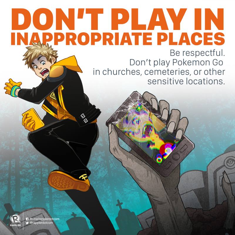 อย่าเล่นในที่ที่ไม่สมควรเข้าไปเล่น กรุณาให้ความเคารพสถานที่ อย่าเล่นในสถานที่เช่น โบสถ์ สุสสาน หรือสถานที่ที่ค่อนข้างต้องการความเคารพหรือสงบเงียบ