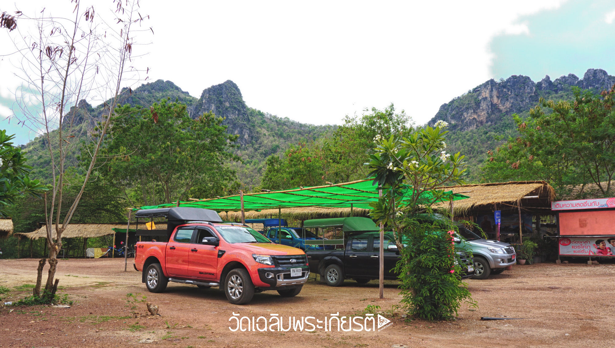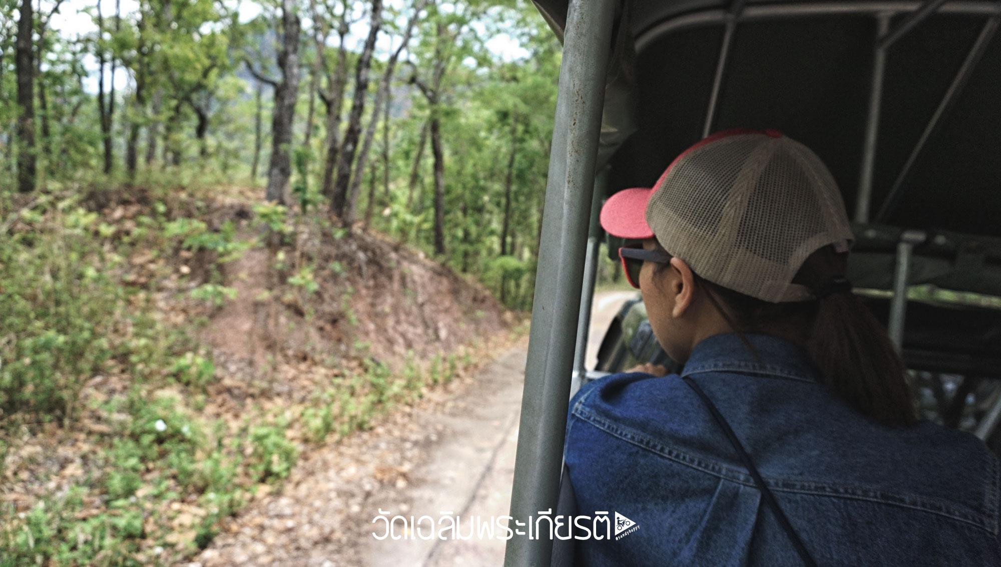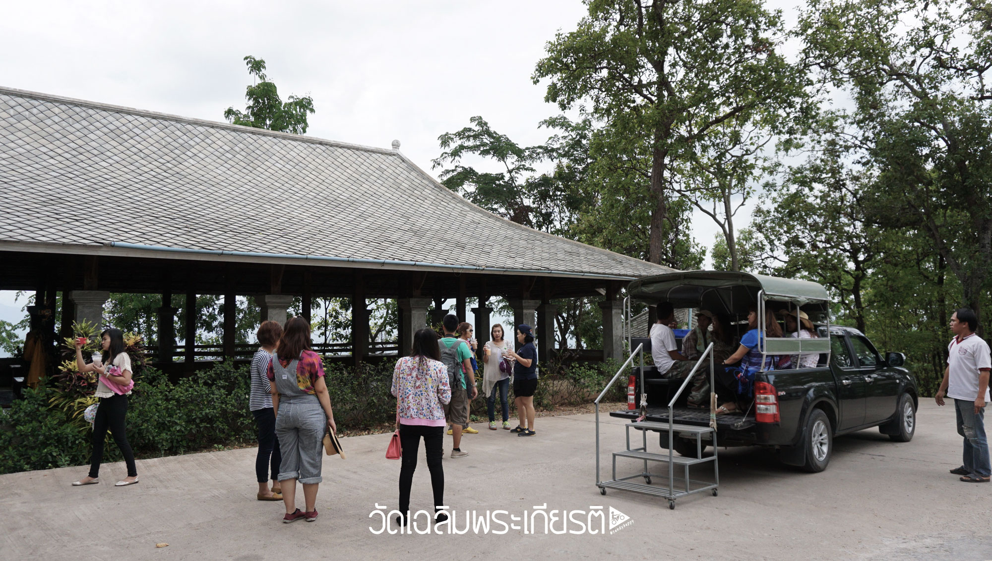 มาถึงจุดต่อรถขึ้นเขา เราต้องไปรถของทางวัดเนี่องจากทางขึ้นต้องใช้รถกระบะโฟวิล เท่านั้นเพราะทางชันมาก และมีบางจุดรถสวนไม่ได้ บางจุดต้องเร่ง ต้องผ่อน ต้องเป็นคนชำนาญทางเท่านั้นถึงจะขับได้ ค่อนข้างหวาดเสียวและอันตราย