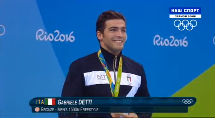 ดีใจกับปัลตี้ (gregorio paltrinieri) ด้วยค่ะ ได้เหรียญทองแรกในโอลิมปิกในการแข่งขันฟรีสไตล์ 1500 เมตรชาย รวมถึงเพื่อนรักอย่างเด๊ตตี้ (gabriele detti) ด้วยที่ได้เหรียญทองแดงที่ 2 ในโอลิมปิกที่ริโอ (ได้ทองแดงเหรียญแรกจากฟรีสไตล์ 400 เมตรค่ะ) เหรียญเงินเป็นของคอนเนอร์ (USA) ค่ะ