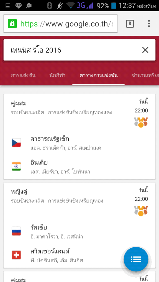 เทนนิสจะมีถ่ายทอดสดอีกไหมน่าดูทุกคู่เลย ในgoogle เวลาในไทยทุกคู่