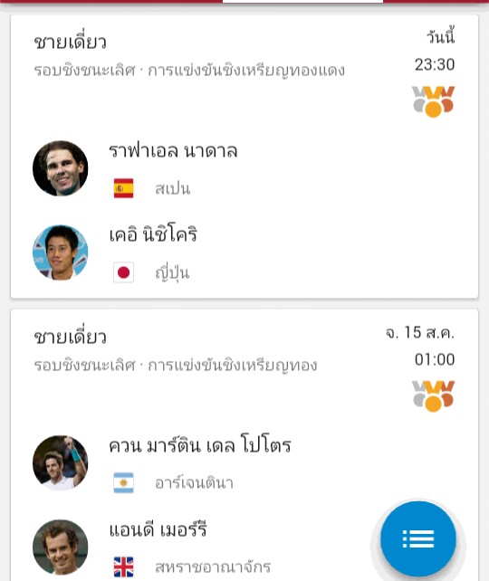 ชนะ Kvitova มาได้ ฝีมือคงไม่ธรรมดา (ได้แต่เดาเพราะไม่ได้ดูถ่ายทอดสด) จริง ๆ เหรียญทองหญิงเดี่ยวนี่ก่อนแข่งใคร ๆ ก็คิดว่าเซเรน่านอนมา ปรากฎว่าคู่ชิงกลายเป็น Puig vs Kerber ซะงั้น ส่วนรอบรองชายเดี่ยว