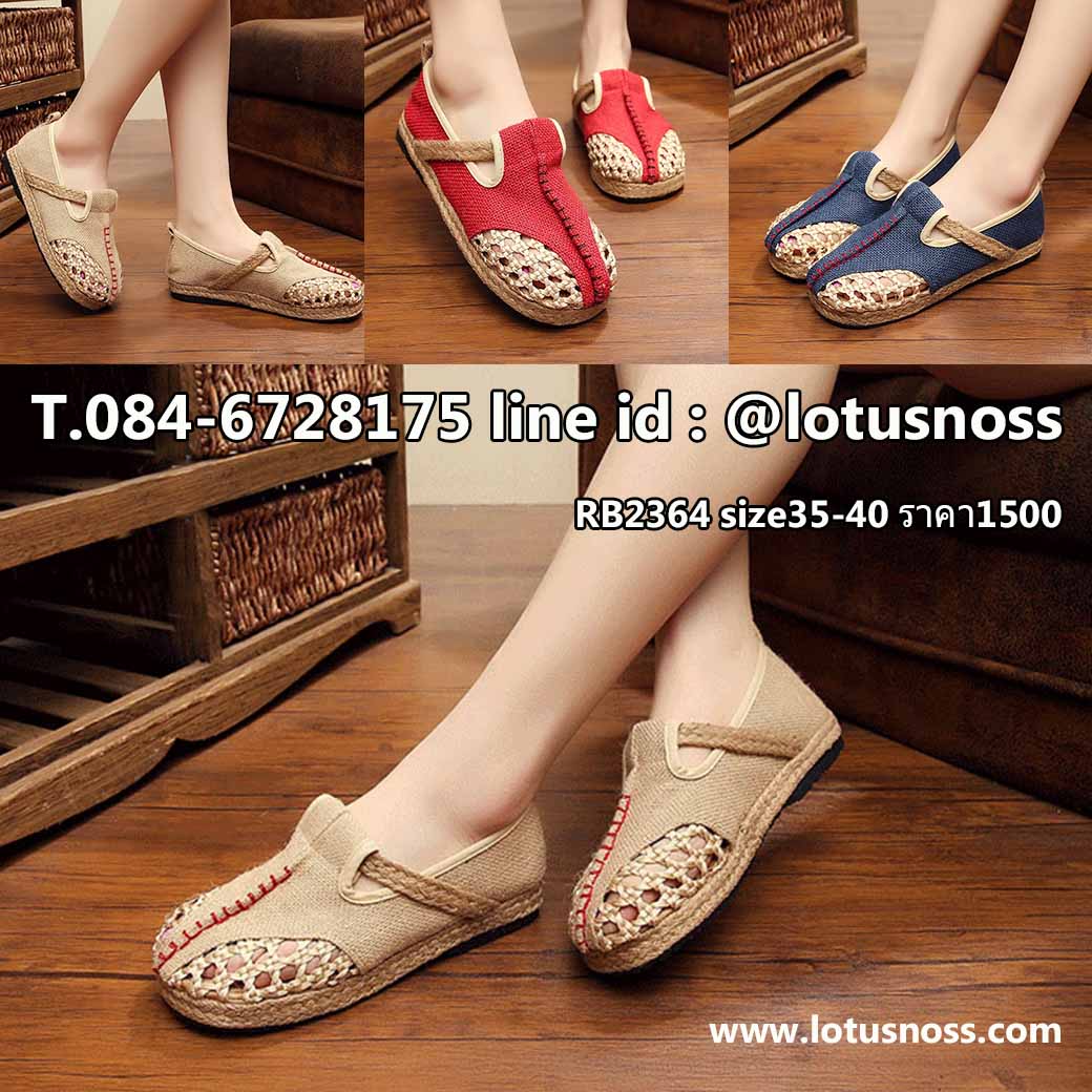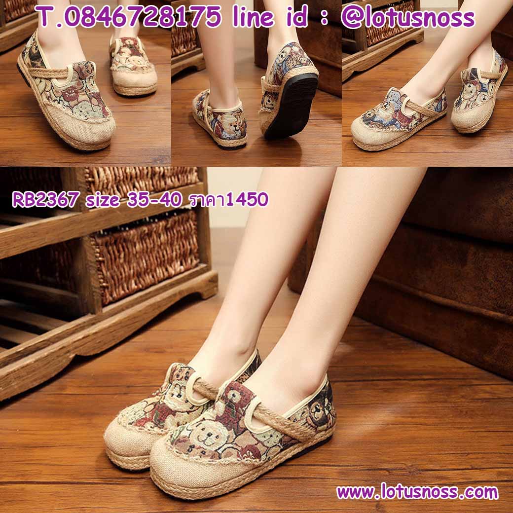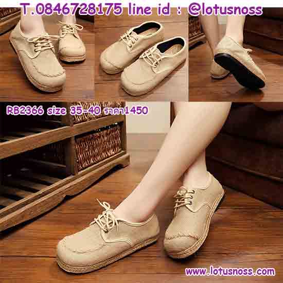 รองเท้าคัทชูผ้าใบส้นเตี้ยเพื่อสุขภาพผ้าลินินทอมือแฟชั่นสวยน่ารักเบาสบาย