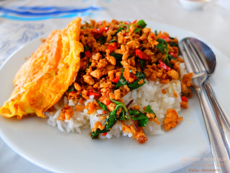 "กะเพราไก่+ไข่เจียว" #เพราะเจ้าของกระทู้ชอบกินไข่เจียวค่ะ เห็นหน้าตาธรรมดาแบบนี้ แต่อยากบอกว่า เข้มข้น อร่อย ถูกใจเรามาก ๆ ไก่ที่ผัดกับเครื่องปรุงและใบกะเพราจนหอมฉุยแบบแห้ง ๆ กับข้าวสวยร้อน ๆ พร้อมไข่เจียวแล้วบีบซอสพริกใส่นิดหน่อยนะ...นึกถึงแล้วน้ำลายสอ อยากกินอีก อันนี้เด็ดจริงต้องมาลอง!