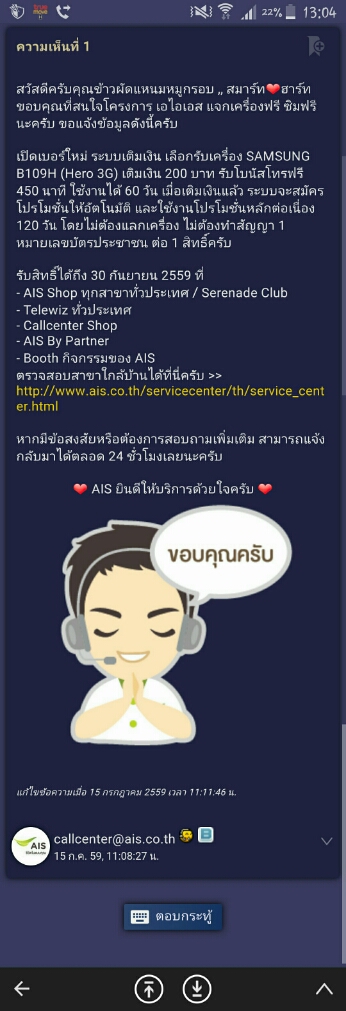AIS แจกเครื่องฟรี 3G แต่ไปติดต่อที่ไหนก็บอกว่าไม่มีเครื่องให้