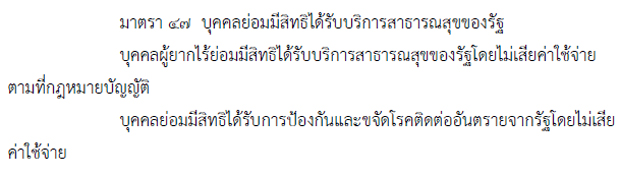 มีแค่บอกว่า ผู้ยากไร้(ยากไร้นะไม่ใช่อยากไร้)ต้องได้สิทธิในการรักษาพยาบาลฟรี