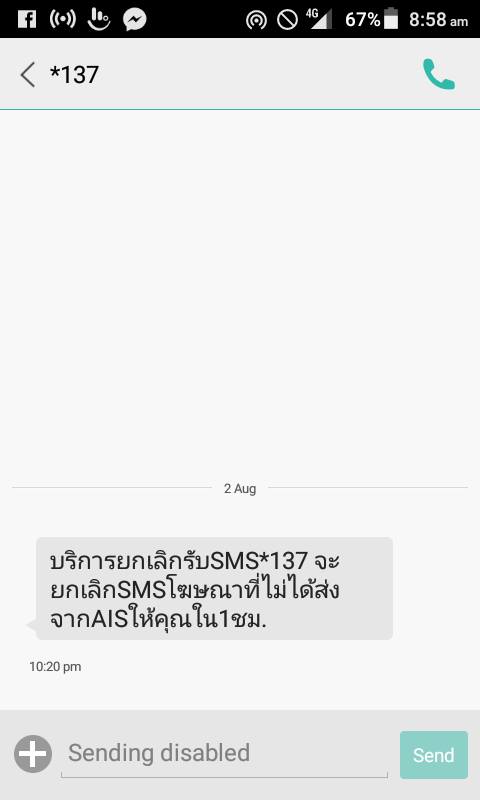 ล่าสุดมี SMS content ส่งมาผลาญเงินในระบบที่เติมไว้อีก โดยที่ไม่สามารถยกเลิกหรือทำอะไรได้เลย