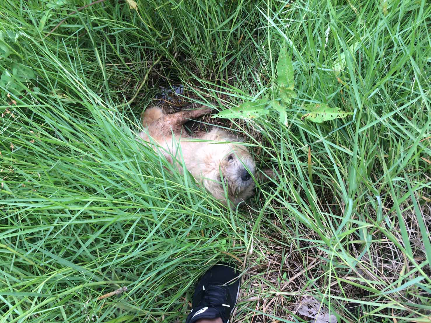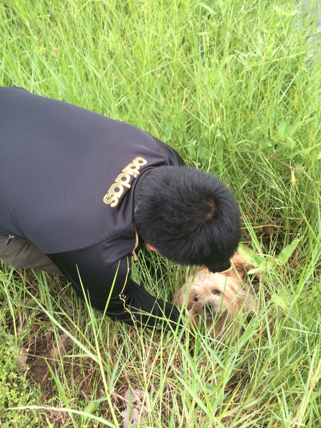 กำลังจะกลับแต่ก็ไปนั่งเล่นคุยกับเพื่อนบริเวณใกล้สระ เพื่อนเรียกให้ไปดูว่าหมาอยู่นี่ๆ เจอตัวแล้ว!! *0*